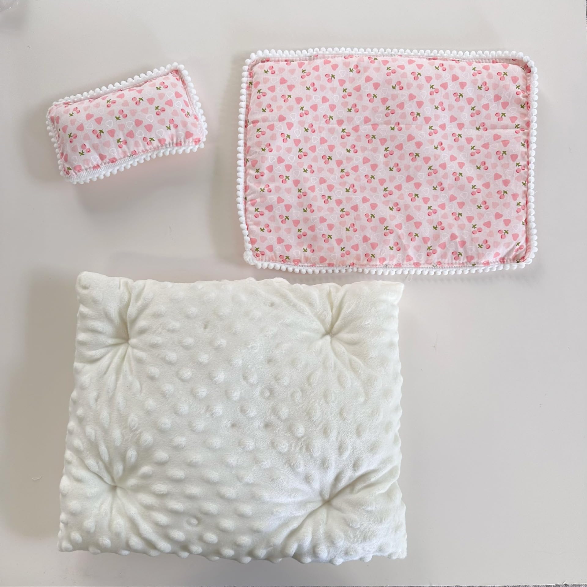 Bedding Set for 17cm labubu Doll, 3-Piece Pillow, Mattress & Blanket, Pink Heart, Yellow Pineapple & Pink Cake Designs (No Doll) (Pink Heart)