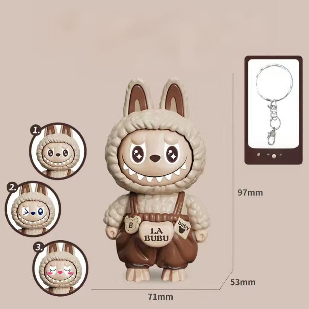 Labubu Keychain with Changeable Faces, Cartoon Key Chain for Bag Charms Handbag Purse Backpack Accessories-Brown