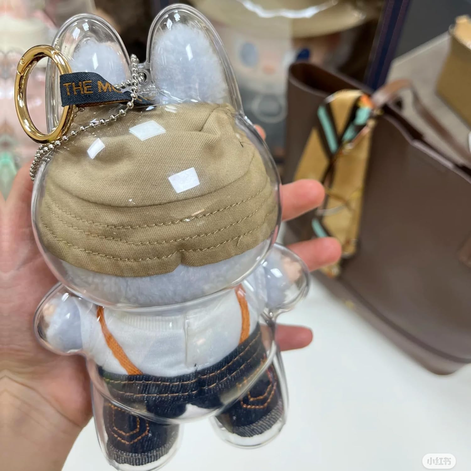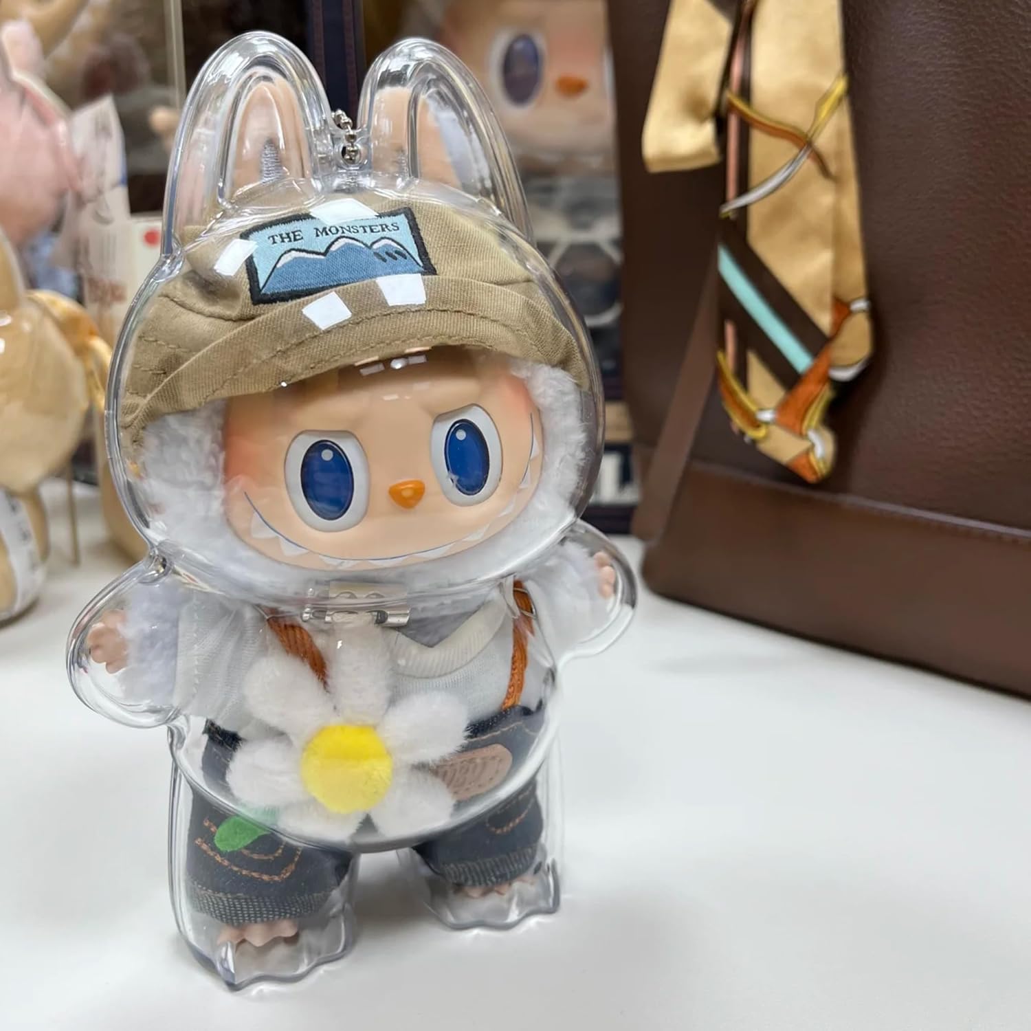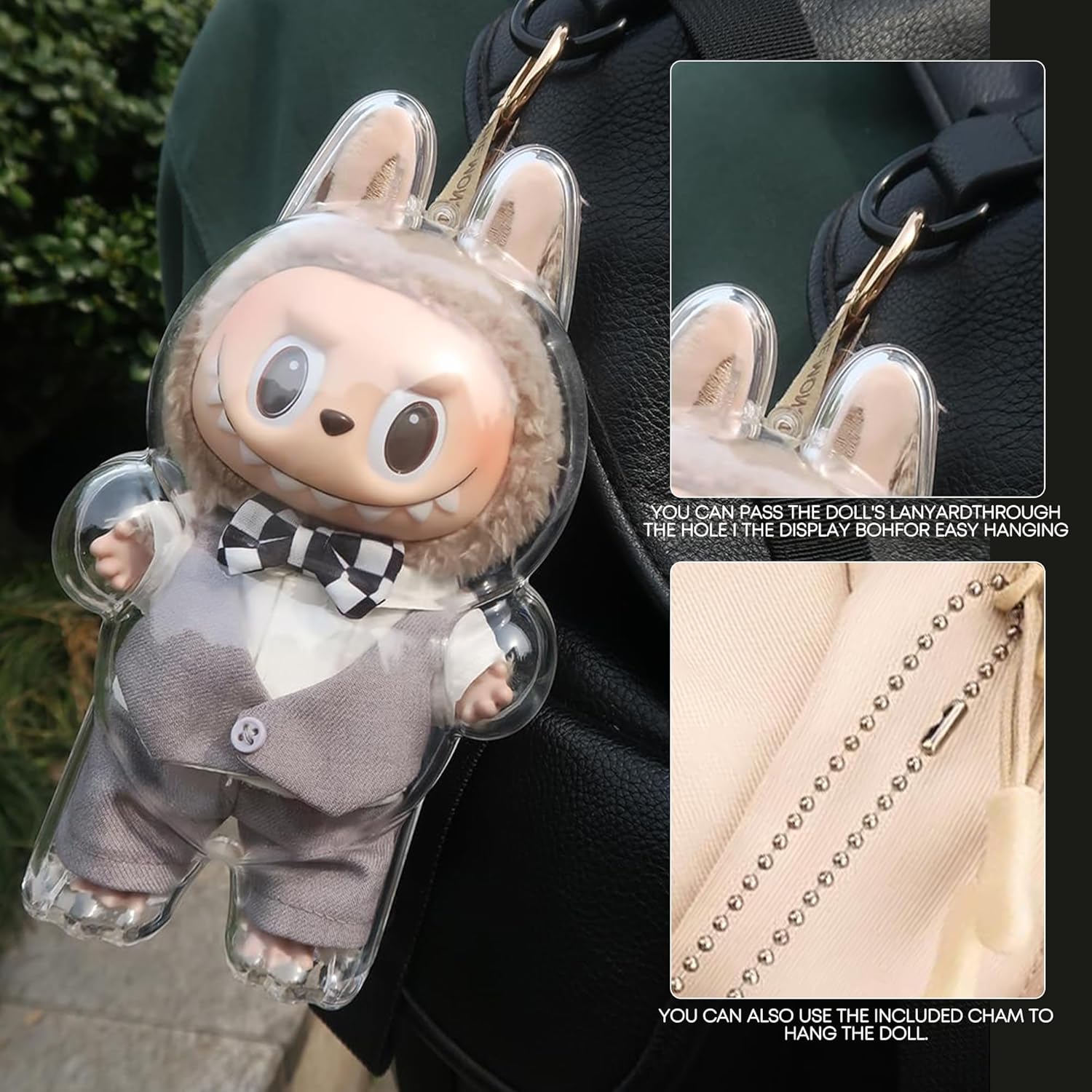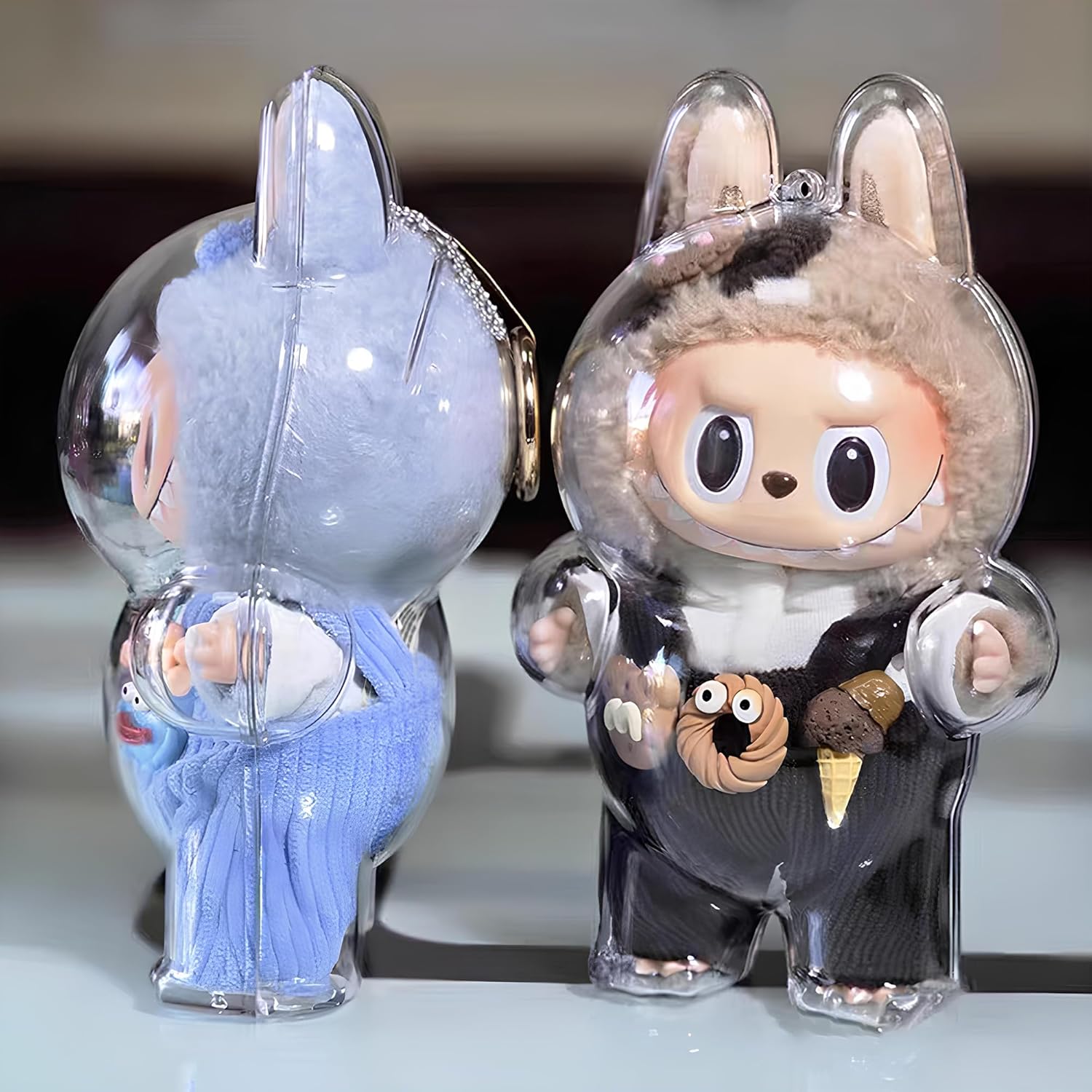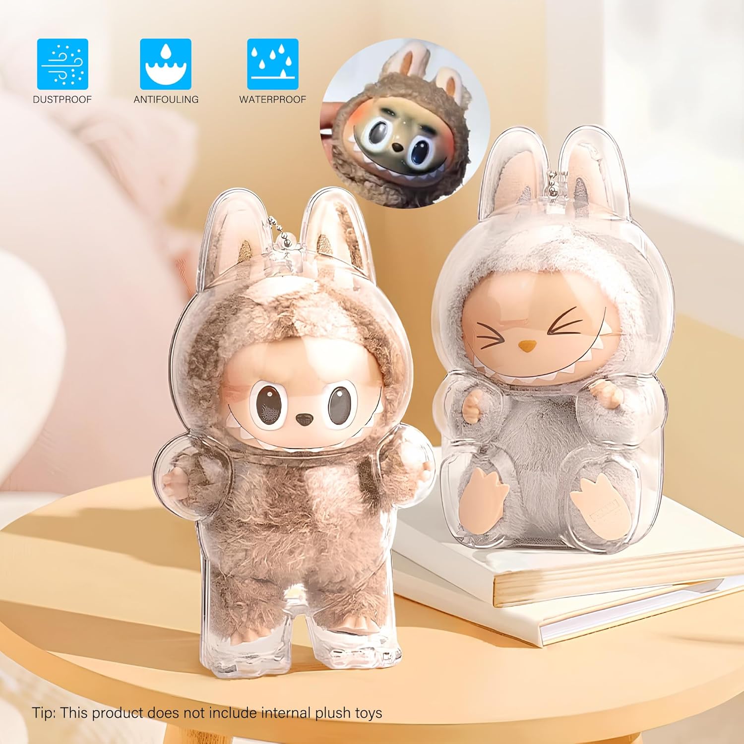 LABUBU Protective Case – Clear Protective Cover with Silicone Strap for Exciting Macaron Standing Figure, Dustproof & Portable Showcase for Collectibles